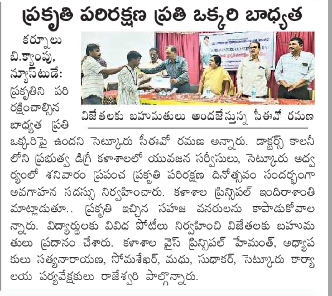 Affiliated to Rayalaseema University, Kurnool Doctors Colony, B.Camp, Kurnool Constituent college of Cluster University