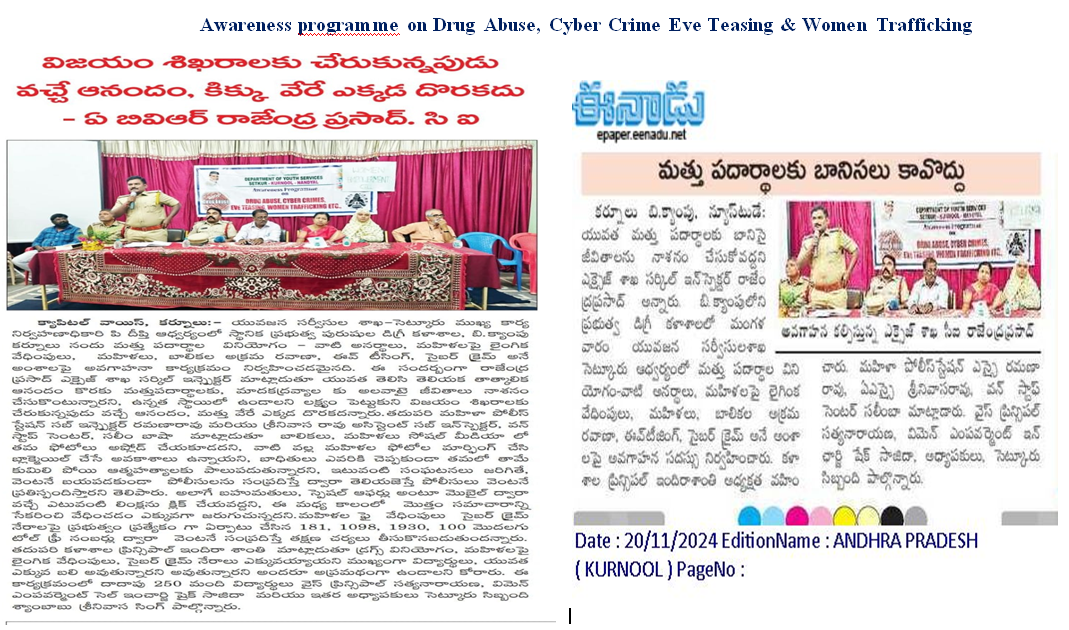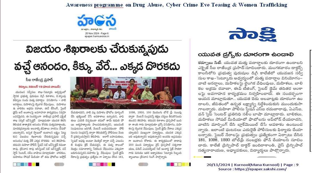 Awareness programme on Drug Abuse, Cyber Crime sEve Teasing & Women Trafficking